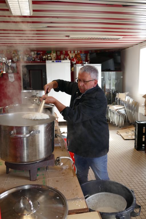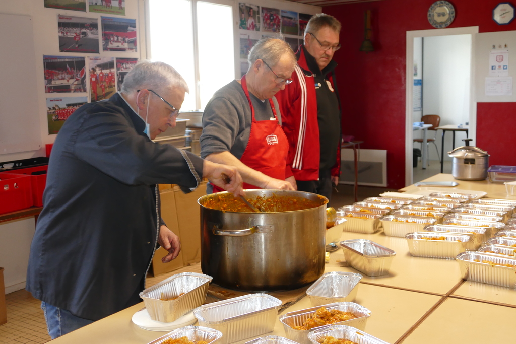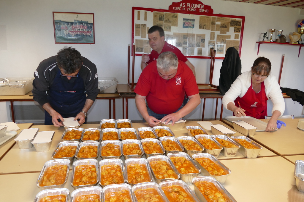 L’ASP a, une nouvelle fois, pu compter sur ses bénévoles. En effet, depuis le début du mois de mars, le club de Plouvien avait lancé le rendez-vous du rougail-saucisses et, dès vendredi 26, une dizaine de bénévoles étaient à poste pour la préparation. Samedi 27 au matin, l’heure de la distribution était arrivée : l’opération a connu un vif succès puisque 650 parts ont été vendues, pour le plus grand plaisir des responsables autour du président, Jean Bellec.