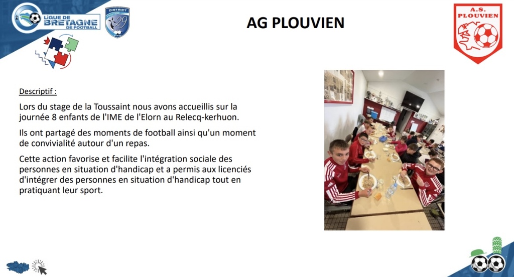 Le club est mis en avant par la ligue de Bretagne pour notre action sur l'intégration d'un IME lors de la journée de stage de la Toussaint.