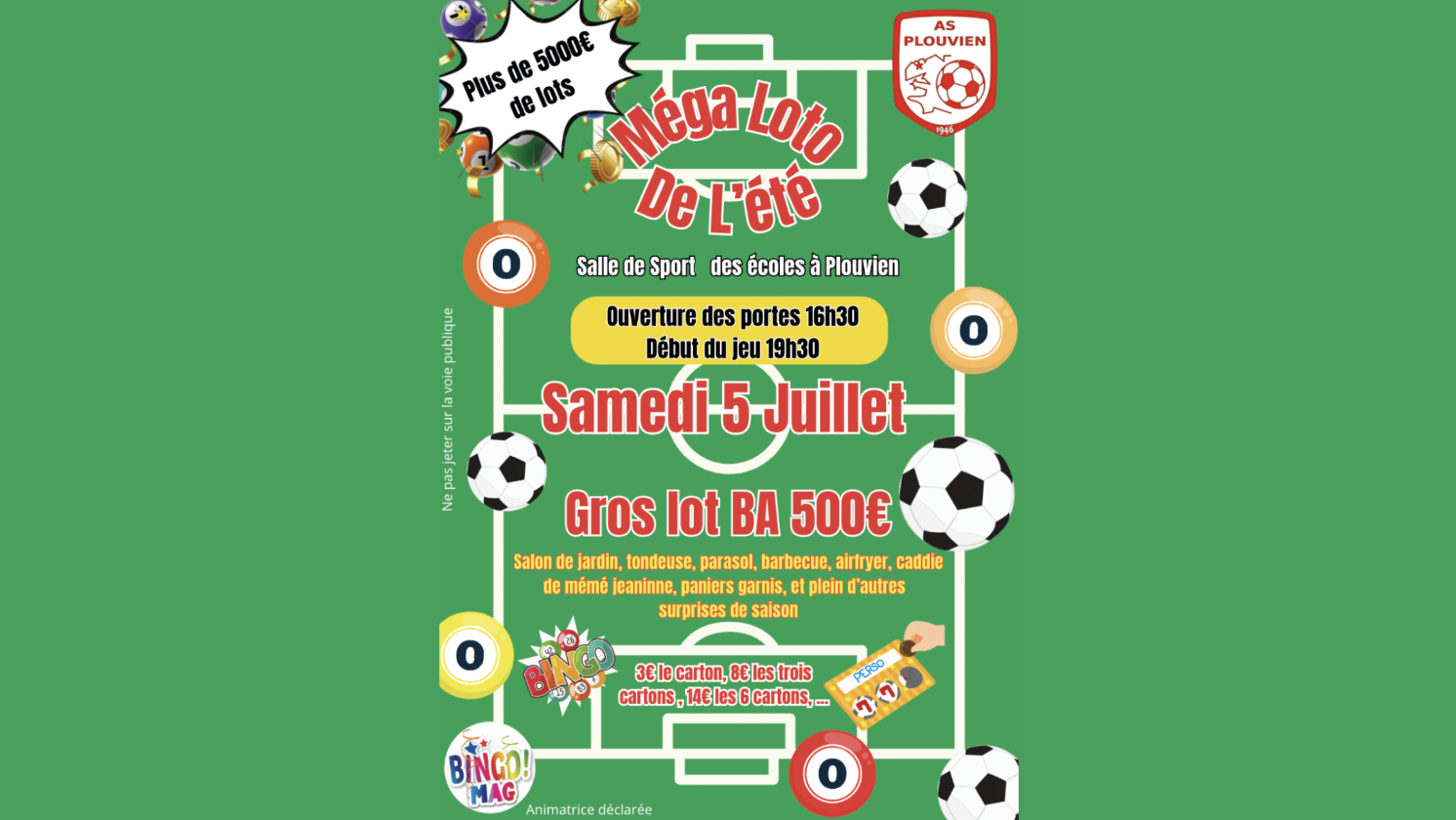L’AS Plouvien vous donne rendez-vous pour son grand loto de l’été, un événement festif et convivial à ne pas manquer !