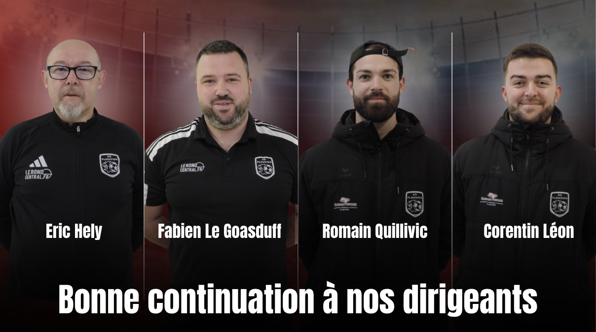 L’AS Plouvien remercie Éric Hely, Fabien Le Goasduff, Romain Quillivic et Corentin Léon qui quittent leurs fonctions de dirigeants après plusieurs années de fidèle engagement.